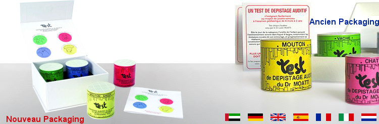 Mots-clés : Test de Moatti, Kit de Moatti, Boîtes de Moatti, Audition, pédiatrie, pédiatre, acoustique, sourd, surdité, entendre, symptome, symptôme, jouet, sonore, boîte, test, kit, examen, dépistage, oreille, enfant, bébé, pédiatrique, clinique, moatti, moati, audio-phonologie, audiophonologie, vache, jouets, boites, auditif, protection maternelle infantile, orthophoniste, audioprothesiste, audioprothèsiste, audioprothésiste, audioprothèse